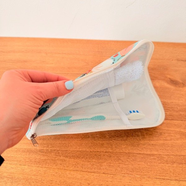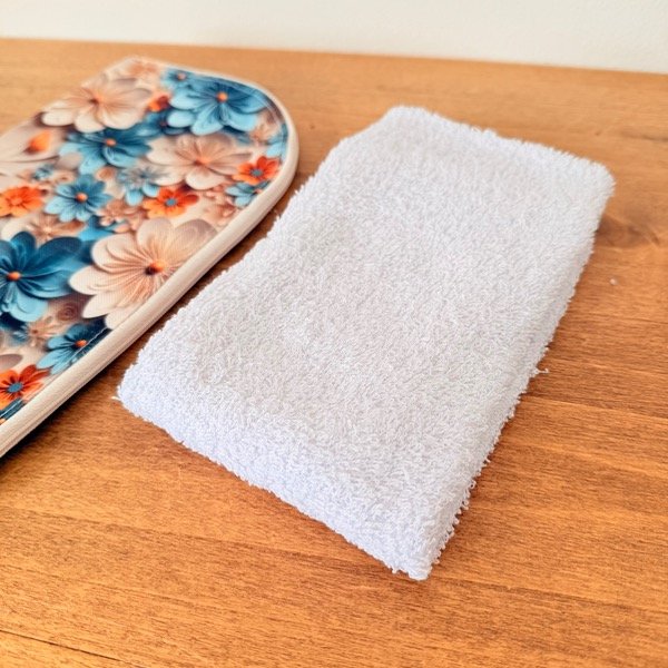 Estuche de cordura impermeable y resistente al uso con interior de silver y bolsillos de red biyoné. Más toalla blanca doble felpa.