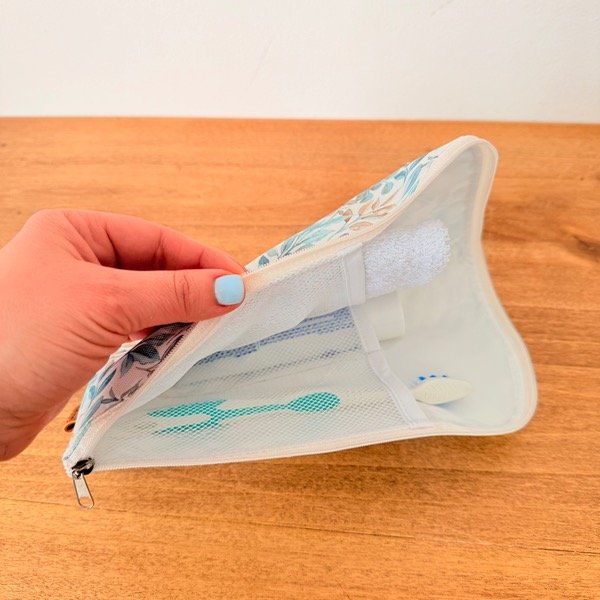 Estuche de cordura impermeable y resistente al uso con interior de silver y bolsillos de red biyoné. Más toalla blanca doble felpa.
