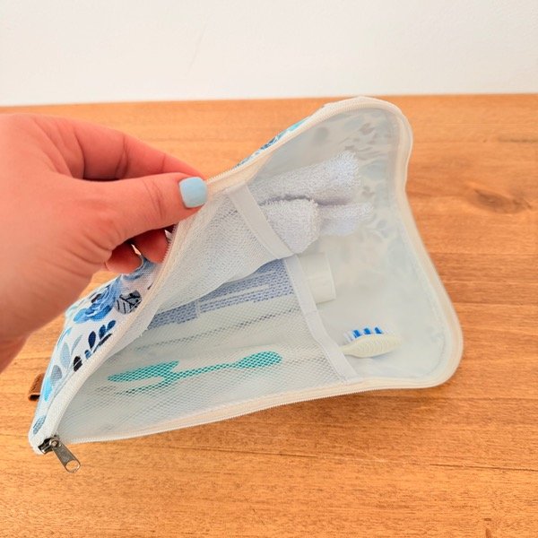 Estuche de cordura impermeable y resistente al uso con interior de silver y bolsillos de red biyoné. Más toalla blanca doble felpa.