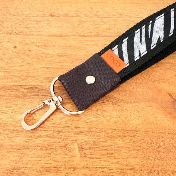 Llavero de cinta mochilera poliéster de 3 cm de ancho y 12 cm de largo. Con mosquetón muy seguro de 4 cm de largo y 3 cm de ancho.
