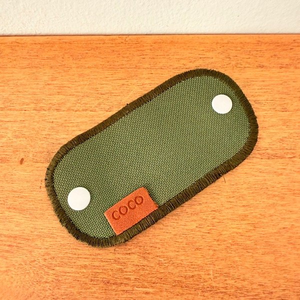 De doble tela cordura, broche blanco y terminaciones en bordado.