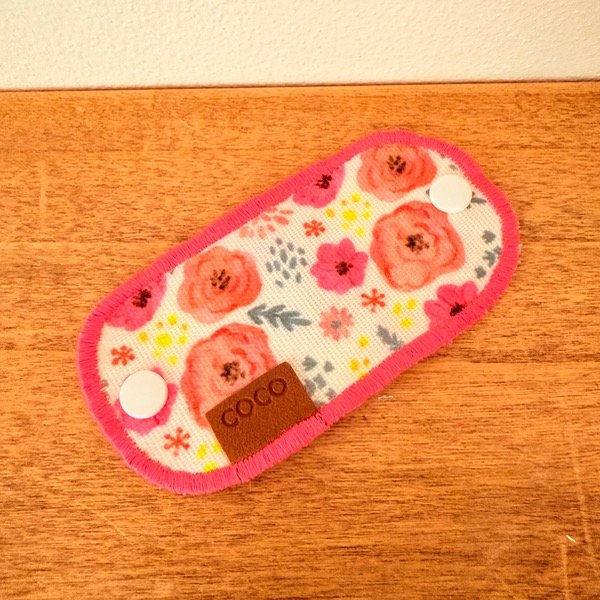 De doble tela cordura, broche blanco y terminaciones en bordado.