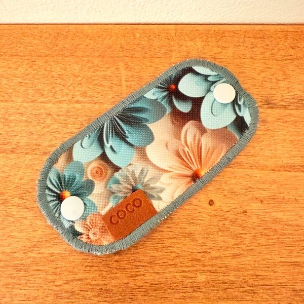 De doble tela cordura, broche blanco y terminaciones en bordado.