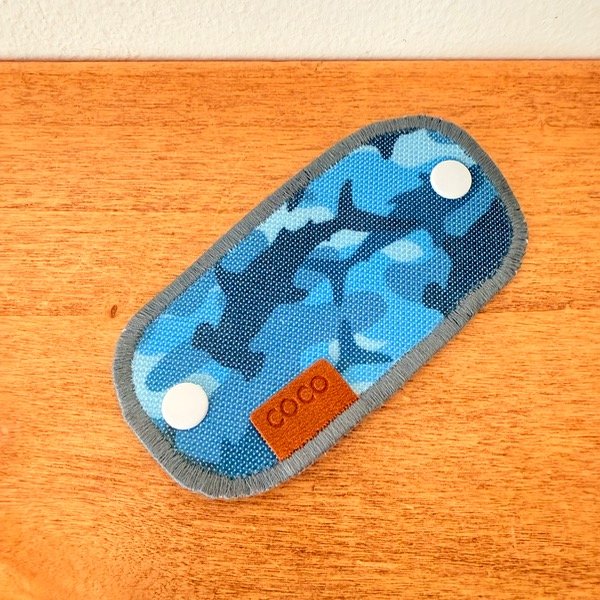 De doble tela cordura, broche blanco y terminaciones en bordado.