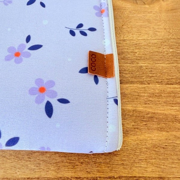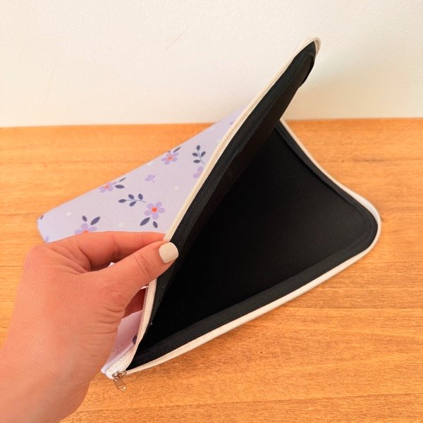 Estuche de símil neoprene con cierre desde la parte inferior derecha hasta arriba a la izquierda